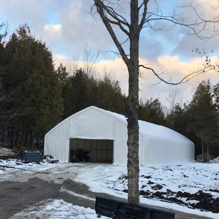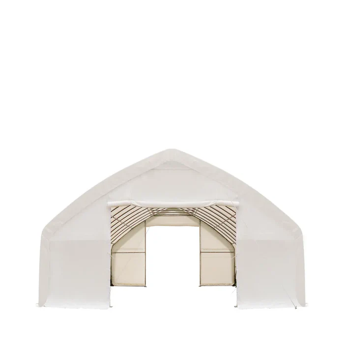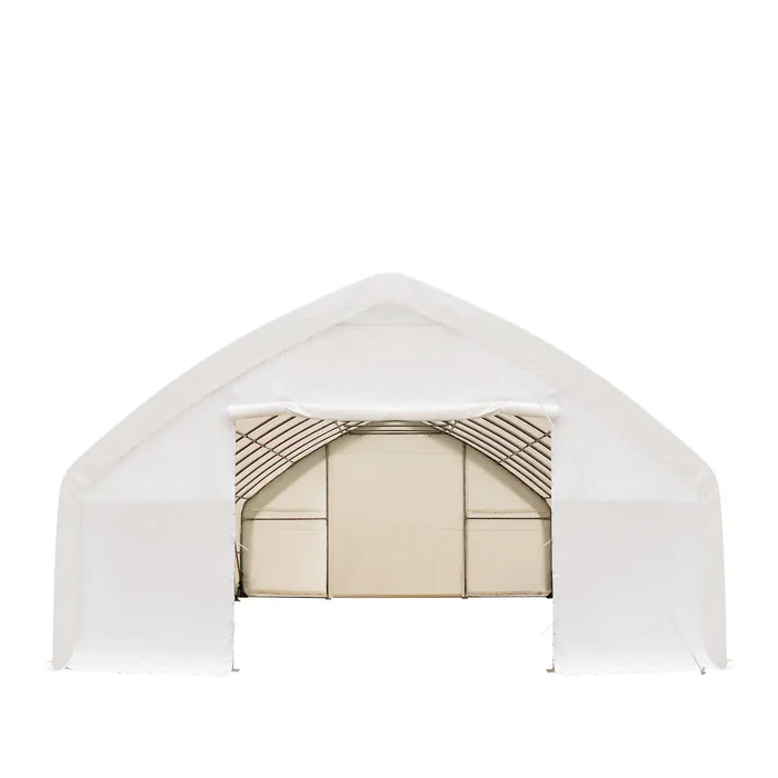 Roughly 13′ of entry and exit space on both endwalls provides a huge opening to allow workflow coming in and out. Use this shelter as storage for tools, large equipment, ongoing jobs, maintenance, and mechanical labour. The PE fabric has a self-cleaning quality and comes in a vibrant white colour that reflects UV rays and makes any location it occupies look sharp, neat and professional.