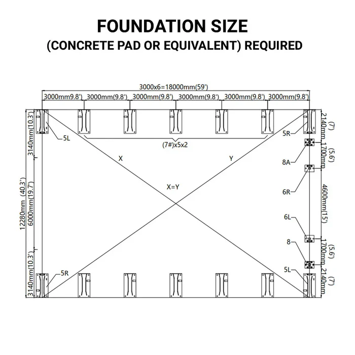 Required Foundation Size 18000mm(59′) (W) x 12280mm (40.3′) (L)